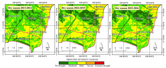- Tran, H.T.; Campbell, J.B.; Tran, T.D.; Tran, H.T. Monitoring drought vulnerability using multispectral indices observed from sequential remote sensing (Case Study: Tuy Phong, Binh Thuan, Vietnam). GISci. Remote Sens. 2017, 54, 167–184. [Google Scholar] [CrossRef]
