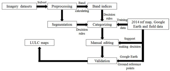 - Cao, X.; Ke, C.Q. Land Use Classification with QUICKBIRD Image Using Object-Oriented Approach. IEEE Int. Geosci. Remote Sens. Symp. 2006, 1, 3255–3258. [Google Scholar] [CrossRef]