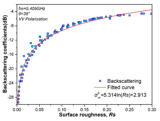 The backscattering coefficients for the VH polarization was simulated by adopting the cross-polarized ratio function that was previously proposed and reported by Oh et al [,,]. After the VH-polarimetric backscattering coefficients had been computed, the numerical relation between cross-polarimetric backscattering coefficients and were computed as: