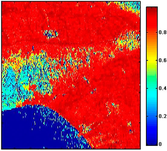 Applying PSInSAR on a dataset of 29 descending Sentinel-1A radar images resulted in mean velocity map of land deformation in the interest area covering a period between June 2017 and May 2018. It should be noted that based on the spatial coherence of the PSs calculated in the area, most of the region is covered by a coherence around 0.85 or higher and it can prove the reliability of the monitoring process (Figure 3).