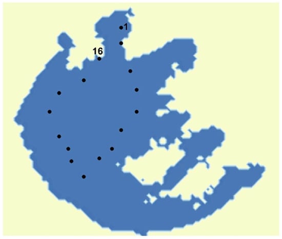 TSM data from Lake Taihu are obtained in several ways in this paper. One is from the field measurements on 26 July 2017. Figure 2 shows the research voyage track. The black points in the figure show the exact location of the sampling stations where the TSM is measured. The north point is the 1st station and the cruise went clockwise until the last station, which is the 16th point. TSM was measured gravimetrically on pre-weighed cellulose acetate membrane filters (47 mm diameter, 0.45 µm pore size). Sufficient samples of surface-layer water were collected and filtered at each station to determine the weight of the particulate matter. The filters were frozen and stored below −20 °C until laboratory processing. In the laboratory, the filters were dried in an oven at 40 °C for 6–8 h, then placed in the silica gel drier for 6–8 h, and finally re-weighed to obtain the TSM concentration using the electronic balance. There was at least one blank sample at each station to make the blank correction. The accuracy of the electronic balance is 0.01 mg. In addition, at each station, the remote sensing reflectance () was measured aboard a ship using an ASD FieldSpec®3 full range (350–2500 nm). We measured the upward radiance from the water surface ) and the standard reflecting plate (), and the downward sky radiance (). To avoid sun-glint contamination, the zenith and azimuth angles used to measure were about 40° and 135° (referring to solar orientation), respectively. In addition, we selected an optimal place to minimize the effects of ship shading and foam. Finally, the remote sensing reflectance () was estimated from the measured , and .