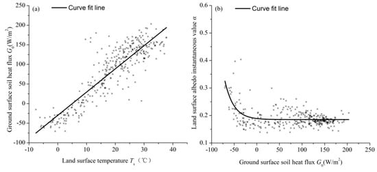 It is evident from Table 8 that there are differences in the sensitivity of the G0 parameterization scheme Maimpr to land surface temperature Ts or land surface albedo α at various stations, but the percentage change of the simulated G0 values caused by the error of satellite-derived Ts or α will not exceed 5%.