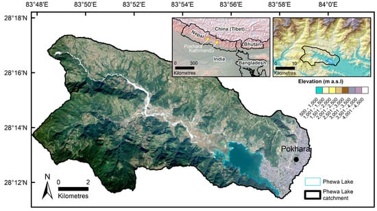 - Shrestha, G.K.C.; Pradhan, A.M.S. Morphometry, Water Quality and Sedimentation of Phewa Lake, Pokhara, Nepal. 2010. Available online: https://www.researchgate.net/profile/Ananta_Pradhan/publication/273063004_WATER_QUALITY_ECOLOGICAL_STATUS_AND_BATHYMETRY_OF_PHEWA_LAKE_POKHARA/links/5565574708aec4b0f4859a38.pdf (accessed on 27 May 2018).
