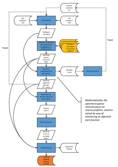 While the forward problem—of calculating a satellite measurement from a given instrument spectral response function and a given top-of-atmosphere (TOA) spectral radiance—has a unique solution, the inverse problem—of inferring the instrument spectral response function from a given set of satellite measurements and TOA spectral radiance—has multiple solutions (maybe an infinite number). For that reason, any available prior information on forward model parameters needs to be made explicit, and measurement (and modelling) uncertainties need to be represented carefully.