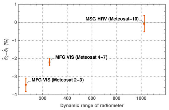 with the dynamic range of the radiometer: the lower the dynamic range, the more negative is