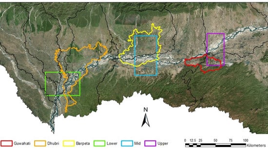 - Mahanta, C.; Zaman, A.M.; Shah Newaz, S.M.; Rahman, S.M.M.; Mazumdar, T.K.; Choudhury, R.; Borah, P.J.; Saikia, L. Physical Assessment of the Brahmaputra River; International Union for Conservation of Nature (IUCN), 2014; Available online: https://portals.iucn.org/library/sites/library/files/documents/2014-083.pdf (accessed on 19 April 2018).