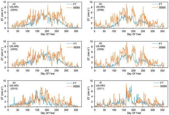 where FT-ET is the observed flux tower daily ET and SEBS-ET is the estimated daily ET from the SEBS model.