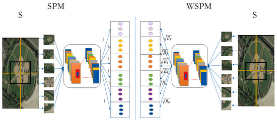 where . The SPM model considers that each subimage equally contributes to represent the image. The superior performance of visual recognition is often achieved with the spatial pyramid method, which is to obtain spatial information of images by the statistical distribution of image-feature points at different resolutions. The image is divided into gradually fine grid sequences at all levels of the pyramid. However, the weights to evaluate the representation of different features are fixed.
