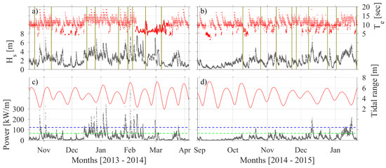 - Cahill, B.; Lewis, T. Wave period ratios and the calculation of wave power. In Proceedings of the 2nd Marine Energy Technology Symposium, Seattle, WA, USA, 15–17 April 2014; pp. 1–10. [Google Scholar]