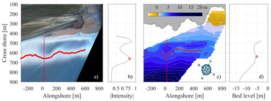 - Stockdon, H.F.; Holman, R.A. Estimation of wave phase speed and nearshore bathymetry from video imagery. J. Geophys. Res. 2000, 105, 22015–22033. [Google Scholar] [CrossRef]