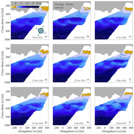 - Lippmann, T.C.; Holman, R.A. Quantification of Sand Bar Morphology: A Video Technique Based on Wave Dissipation. J. Geophys. Res. 1989, 94, 995–1011. [Google Scholar] [CrossRef]