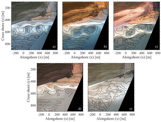 - Bergsma, E.W.J.; Conley, D.C.; Davidson, M.A.; O’Hare, T.J. Video-Based Nearshore Bathymetry Estimation in Macro-Tidal Environments. Mar. Geol. 2016, 374, 31–41. [Google Scholar] [CrossRef]