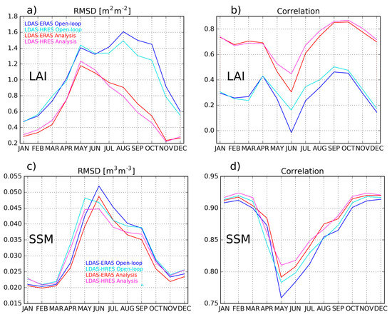- Leroux, D.J.; Calvet, J.-C.; Munier, S.; Albergel, C. Using Satellite-Derived Vegetation Products to Evaluate LDAS-Monde over the Euro-Mediterranean Area. Remote Sens. 2018, 10, 1199. [Google Scholar] [CrossRef]