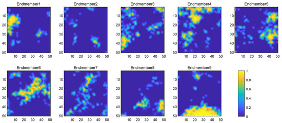 Ground-truth abundance maps associated to nine endmembers used in .