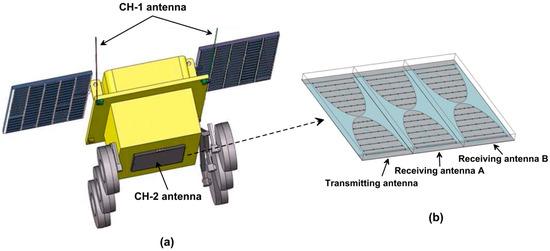 (a) The position of CH-2 antenna on the rover (b) The structure of the CH2 antenna.