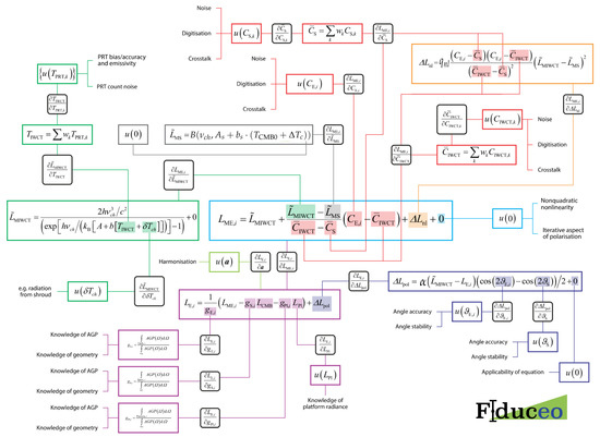 Building the full measurement equation required for a comprehensive propagation of uncertainties requires an assessment of all possible effects that have an impact on the measurement process and that were considered in the operational calibration by AAPP. The full AAPP measurement equation is presented in Figure 1 as diagram indicating all dependencies. The final Earth radiance is calculated from