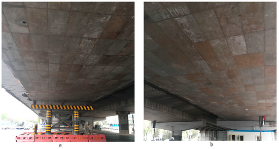 Statue of the lower surface of the right sub-bridge of Beishatan Bridge. (a) the southern half of the right sub-bridge of Beishatan Bridge, and (b) the north half of the right sub-bridge of the Beishatan Bridge.