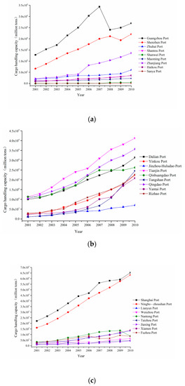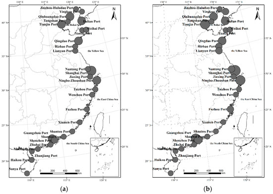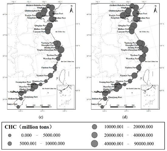 3.5. Spatial Pattern and Evolution of CHC for Coastal Ports in China from 2001 to 2015