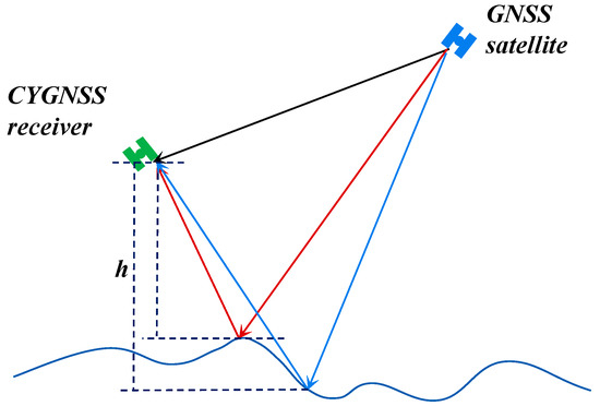 Direct signal and sea surface reflection signal path received by CYGNSS satellite.