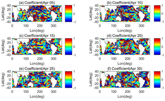 Figure 10, since the spatial resolution of the AVISO SWH data is 1° × 1°, and the spatial resolution of the SWH estimate is 0.25° × 0.25°, the SWH estimation value needs to be interpolated. It can be seen from