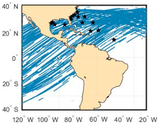 Distribution of mirror point trajectories for buoy stations and CYGNSS observations.