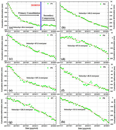 5.2. Spatiotemporal Deformation Patterns of Xiamen New Airport