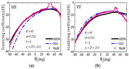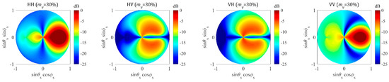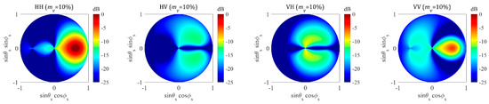 - Liao, T.H.; Tsang, L.; Huang, S.; Niamsuwan, N.; Jaruwatanadilok, S.; Kim, S.B.; Ren, H.; Chen, K.L. Co-polarized and cross-polarized backscattering from random rough soil surfaces from L-band to Ku-band using numerical solutions of Maxwell’s equations with near-field precondition. IEEE Trans. Geosci. Remote Sens. 2016, 54, 651–662. [Google Scholar] [CrossRef]