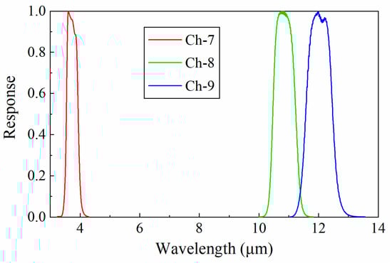 LST retrieval from remote sensing data can be traced back to the 1970s []. Many LST retrieval methods have been proposed for thermal infrared (TIR) data under different assumptions of atmosphere and emissivity in order to solve the problems identified when calculating LST from satellite data, as follows: Atmospheric correction from the sensor to the ground and the impact of land surface emissivity (LSE) []. Among all of these methods, the split-window (SW) algorithm is one of the most effective and widely used methods. The conventional SW algorithm utilizes linear or nonlinear combinations of the brightness temperature at the top of the atmosphere (TOA) of two adjacent TIR channels at around 11 and 12 μm to remove the atmospheric effect during radiative transfer and to estimate LST. It has been applied to retrieve LST from various sensors, such as Moderate Resolution Imaging Spectroradiometer (MODIS), Landsat 8, and Chinese FengYun-2C (FY-2C) [,,]. On the basis of the conventional SW algorithm, if more than two TIR bands are available on the sensor, new forms of SW algorithms can be developed to make full use of the spectral information. For instance, Ye et al. [] proposed a four-channel algorithm and applied it to Chinese Gaofen-5 (GF-5) satellite data. Sun and Pinker [] proposed a three-channel algorithm that could be applied to any sensor with three TIR channels. Results show that multichannel algorithms provide a more accurate retrieval than conventional ones.
