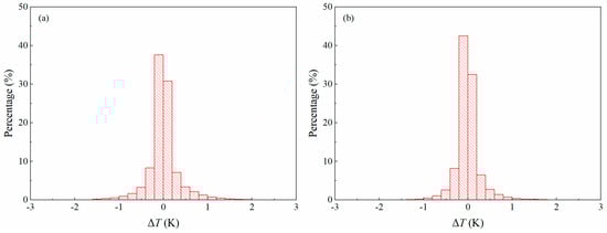 Histograms of LST residual errors for (a) daytime algorithm and (b) nighttime algorithm.