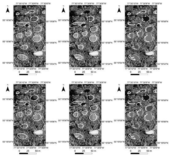 Remote sensing imagery from medium, high and very high-resolution sensors could potentially be used to detect and monitor thermokarst waters [16,17], and this information would be valuable for the modelling of GHG fluxes [10]. Currently, there are enormous gaps concerning the mapping and monitoring at the global scale of small thermokarst lakes and ponds [6,16,18,19,20], and there is a need to find solutions using existing technologies and data [9].
