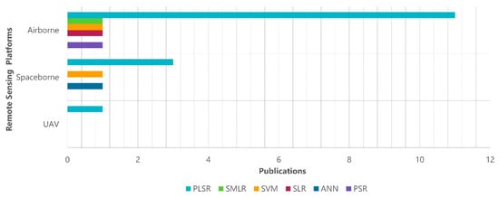 Number of articles which used specific multivariate calibration technique (PLSR: Partial Least Squares Regression; SMLR: Stepwise Multiple Linear Regression; SVM: Support Vector Machines; SLR: Simple Linear Regression; ANN: Artificial Neural Networks; PSR: Penalized-spline Signal Regression; MLR: Multiple Linear Regression) in each EO domain.