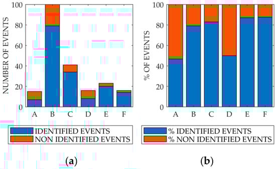 A further study was performed in order to examine the ERDS performance in relation to the disaster type. The left plot of Figure 9 shows, for each analyzed subcategory, the number of identified events compared to the total for this specific subcategory. In the right plot of Figure 9, instead, the same results are shown in terms of percentages.