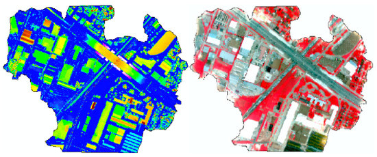 With the continuous development of sensor technology, we can obtain different remote sensing images more conveniently and quickly, and this provides a prerequisite for multi-source image data fusion. Airborne hyperspectral data can acquire hundreds of continuous spectral bands that can provide the precise spectral information of land objects [14]. High-density light detection and ranging (LiDAR) point cloud data can provide precise height information [15]. These two data sources are complementary to each other, so their combination is very helpful for obtaining spectral and height information classification [16]. Up to now, many scholars have applied fused airborne LiDAR and hyperspectral data in various studies for a variety of purposes such as tree species classification [17,18,19,20,21], forest biomass estimation [22,23,24,25], and urban object extraction [26,27,28,29,30,31,32,33,34,35,36]. These studies have mainly concentrated on the following aspects: (1) Extraction of feature parameters, such as attribute profile parameters [26] and morphological attribute profile [27]. (2) Fusion methods, such as pixel-level [28,29,30,31,32], feature-level [27,30,33], and decision-level fusion [34,35,36,37]. Among them, pixel-level fusion mainly uses layer stacked feature parameters. Luo et al. [31] fused LiDAR and hyperspectral data by layer stacking, and they employed the maximum likelihood and support vector machine (SVM) classifiers to classify urban objects. Compared with the classification results of hyperspectral data alone, the overall accuracy of layer stacking fused hyperspectral and LiDAR data was improved by about 9.00%. Feature-level fusion is a method in which features are derived first, and comprehensive analysis and processing are then carried out. Man et al. [30] proposed new methods to fuse LiDAR and hyperspectral data in pixel-level and feature-level fusion, and they used object-based and SVM classifiers to extract urban land use information. In comparison with hyperspectral data alone, hyperspectral-LiDAR data fusion improved the overall accuracy by 6.80% (from 81.70% to 88.50%) when the SVM classifier was used. Meanwhile, compared with the SVM classifier alone, the combined SVM and object-based method improved the overall accuracy by 7.10% (from 87.60% to 94.70%). Zhang et al. [27] fused LiDAR and hyperspectral data in feature-level fusion, and improved the overall accuracy from 80.49% to 89.93% in comparison with hyperspectral data alone. Decision level fusion is used to classify and identify each image individually, and then get the optimal decision results. Zhong et al. [36] fused LiDAR and hyperspectral data in decision-level fusion, and improved the overall accuracy from 87.80% to 90.80% when compared with hyperspectral data alone. Bigdeli et al. [34] applied a decision-fusion method based on multiple support vector machine system for fusing hyperspectral and LiDAR data, the overall accuracy was improved from 88.00% to 91.00% in comparison with hyperspectral data alone. (3) Classification methods have included spectral angle mapping [28], random forest [32,38,39], maximum likelihood classification [28,29,31,33,36,40], support vector machine [29,31,34,36,38,39,40], and object-based classification [41,42]. In general, many studies have shown that LiDAR and hyperspectral data fusion could overcome some of the limitations of using a single data source for object extraction [43].