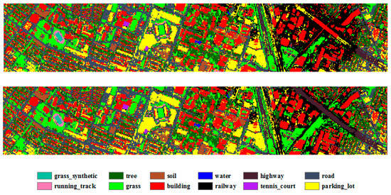 In this study, 12 classes were identified: (1) grass; (2) grass_synthetic; (3) road; (4) soil; (5) railway; (6) parking_lot; (7) tennis_court; (8) running_track; (9) water; (10) trees; (11) building; and (12) highway. Training and validation samples for classification were both provided by the 2013 IEEE GRSS Data Fusion Contest [43] (URL: http://www.grss-ieee.org/community/technical-commitees/data-fusion/). Table 1 shows detailed information on the training and validation samples.