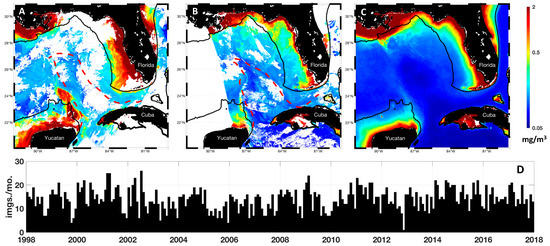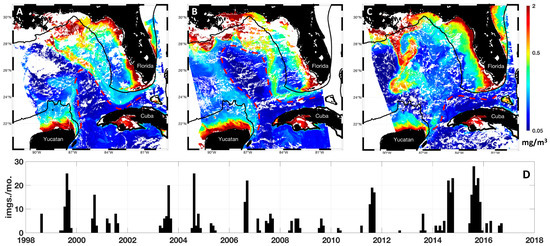 Otis DB, Le Hénaff M, Kourafalou VH, McEachron L, Muller-Karger FE. Mississippi River and Campeche Bank (Gulf of Mexico) Episodes of Cross-Shelf Export of Coastal Waters Observed with Satellites. Remote Sensing. 2019; 11(6):723. https://doi.org/10.3390/rs11060723