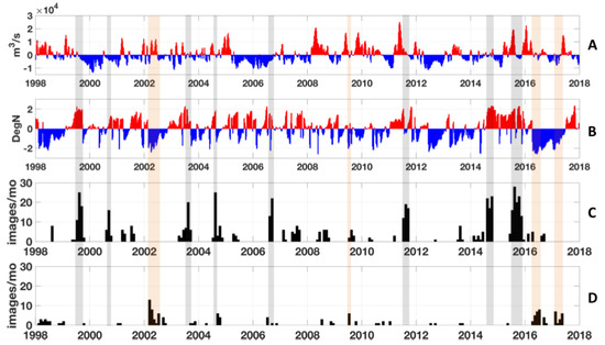 - Muller-Karger, F.E. River discharge variability including satellite-observed plume-dispersal patterns. In Climate Change in the Intra-Americas Sea; Maul, G., Ed.; 1993 United Nations Environmental Programme (Wider Caribbean Region) and Intergovernmental Oceanographic Commissions (Caribbean and Adjacent Regions); Edward Arnold Publishers: London, UK, 1993; Chapter 8; pp. 162–192. [Google Scholar]