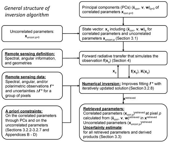 General structure of the correlated multi-pixel inversion approach. The interpretation of symbols used in the figure can be found in Table A1 of Appendix A.