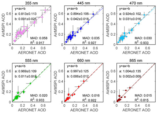 - Dubovik, O.; Smirnov, A.; Holben, B.N.; King, M.D.; Kaufman, Y.J.; Eck, T.F.; Slutsker, I. Accuracy assessment of aerosol optical properties retrieval from AERONET sun and sky radiance measurements. J. Geophys. Res. 2000, 105, 9791–9806. [Google Scholar] [CrossRef]