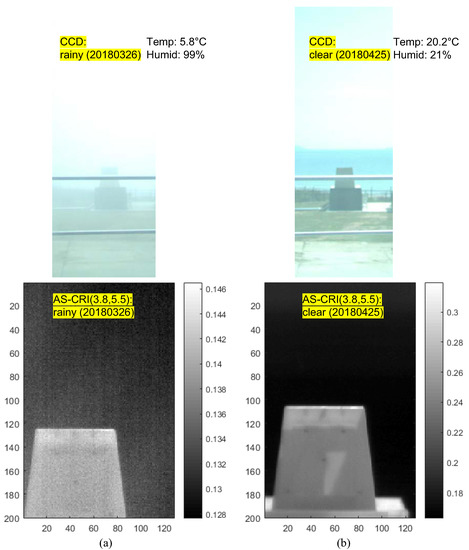 Comparative examples of weather effect on AS-CRI: (a) rainy weather (26 March 2018, 14:00), (b) clear weather (25 April 2018, 14:00).