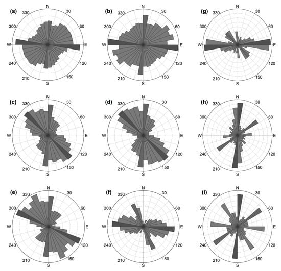 The lineament directions extracted using an automated approach can be compared with the directions relating to the manually obtained lineaments and existing faults in the study area [74,96]. Therefore, in the next accuracy assessment section, the lineament directions from the optical and radar data are compared to the directional filter image as well as the existing faults to evaluate the potential of optical L8, S2A, and S1A radar images for automatic structural lineament extraction. This allows the identification of the most frequent directions of lineaments. The lineament directions reflect the result of tectonic processes that produced them. Therefore, they also can be correlated with the geological history of the area to verify the plausibility of the obtained results.
