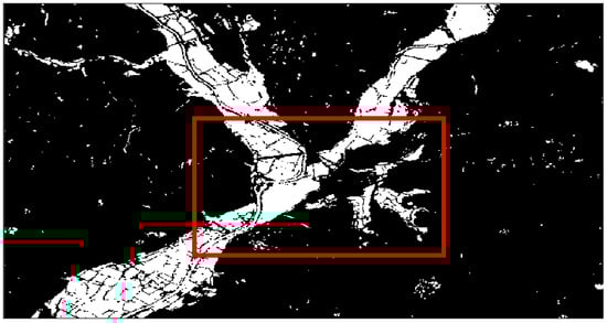 The results in [7,10] and [36] were chosen to benchmark the flood mapping chain presented in this paper, since these methods were also tested on the Tewkesbury 2007 dataset. However, the performances of this paper’s method in terms of computation time cannot be objectively compared relatively to these methodologies, since they were run on machines with different characteristics and on image subsets of different dimensions. In absolute terms, this paper’s method finished the whole processing in under 5 min (Table 13) on a large subset of Tewkesbury 2007 SAR dataset of more than 41 million pixels (Figure 7), which is more than 8 times larger than the subset used in the previous section (Section 4.6). Most of the execution time (more than 3 min) was in fact dedicated to the preprocessing of the pair of SAR images, while the post-processing with graph cuts also required a considerable amount of time to improve the flood map (over 1 min) because the image was quite large. The current approach is thus suitable to operate in emergency situations, when it is necessary to have a quick overview of the flood situation. In fact, the time taken to produce the flood map is in the same order of magnitude as the targeted response time for critical calls in the UK. According to the legislation, the Ambulance and the Fire & Rescue Services are expected to arrive at the location of the reported incident in 8 and 10 min, respectively, 75% of the time [37]. By way of comparison, a method with a similar purpose of mapping the inundation in near real-time in [7] took around 2.67 min on a smaller subset of 5.4 million pixels. Furthermore, for [10] who adapted the process in [7] to Sentinel-1 SAR images, the whole chain took 45 min to map the flood on the entire Ground Range Detected (GRD) image, but included the downloading of the SAR images which is normally dependent on the internet speed. Accordingly, the process described in the current study extends the literature on operational flood mapping from SAR images with a novel method suitable mainly for emergency situations.