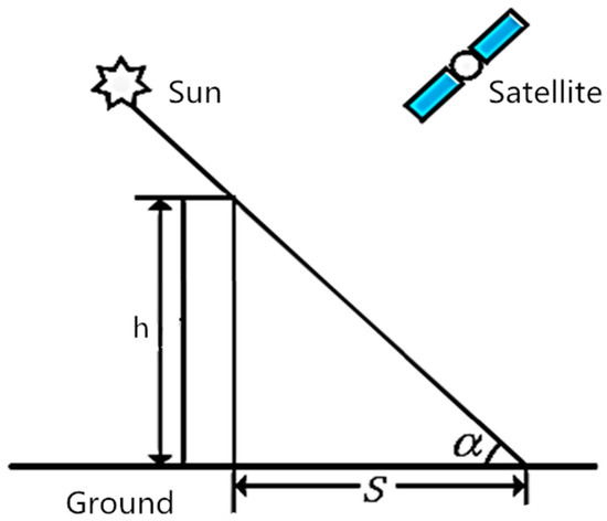 In this case, when the remote sensing satellite takes an image, the geometric relationship between the shadow length of the building and the height of the building itself is given by: