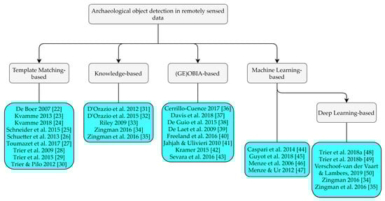 Classification of research on archaeological object detection in remotely sensed data, following Reference [14].