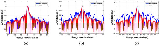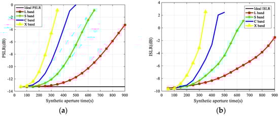 When the integration time is 100 s, the averages of PSLR and ISLR with Monte Carlo simulation of the L, C, and X-band point target imaging are analyzed in Appendix, where the refractive index variance  are assumed as , , and , respectively.