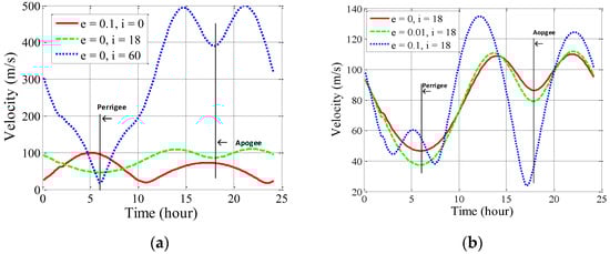 where  is azimuthal resolution and  is the beam-foot velocity. When the geometric configuration and  are fixed, the higher the resolution is, the more serious the quadratic phase error will be. When the wavelength and  are fixed and the orbit configuration is unfixed,  is related to  and  (and ). Therefore, the smaller  is, the larger the quadratic phase error and the serious defocus will be. Generally, the smaller the orbital inclination is, the smaller  will be and the more serious defocus will be. For the same orbital configuration (except the near-zero inclination), the perigee or apogee  is the smallest, while the velocity is the largest near the equator. As a result, the levels of deterioration of different orbital positions are not same.