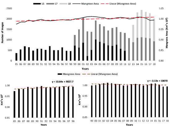 Diniz, C.; Cortinhas, L.; Nerino, G.; Rodrigues, J.; Sadeck, L.; Adami, M.; Souza-Filho, P.W.M. Brazilian Mangrove Status: Three Decades of Satellite Data Analysis. Remote Sens. 2019, 11, 808. https://doi.org/10.3390/rs11070808