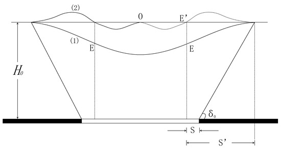 The mining depth can be calculated by the inflection points and boundary points. As can be seen in Figure 2, , , , and S satisfy the following trigonometric function relation:
