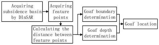 In this study, we used DInSAR and the PIM to locate a goaf in a mining area. As stated in the literature [18], DInSAR is used to obtain the surface subsidence, and the PIM is a relational model between the subsidence basin and the boundaries and depth of a goaf. According to the principle of the PIM, we located the goaf using the feature points of the basin. Then, the reliability of this method was verified by simulation experiments and a real data experiment.