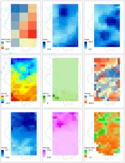 - Landerer, F.W.; Swenson, S.C. Accuracy of scaled GRACE terrestrial water storage estimates. Water Resour. Res. 2012, 48, W04531. [Google Scholar]