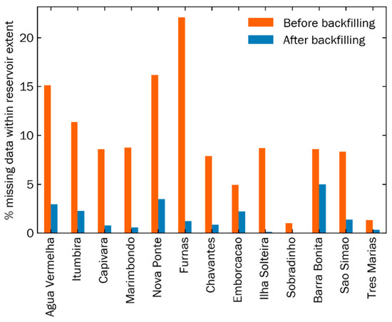 Reductions in average percentage of missing data across all image dates and reservoirs after infilling.